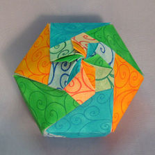 Hexagon - Dome Blossom, Blue, Yellow, Green Swirls